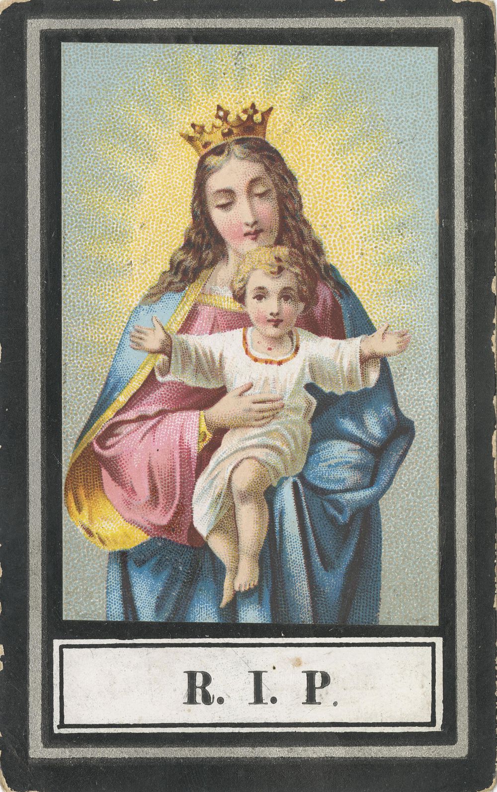Ab Mitte des 19. Jahrhunderts wurden – wenn man wollte und es sich leisten konnte – auf Sterbebildchen auch Portraitfotos angebracht (vgl. ÖMV/10812). Daher besteht die Chance, dass ein Foto von einer Person mittels Sterbeandenken überliefert wurde. Es handelt sich oftmals um das einzige Bild dieser Person, das erhalten geblieben ist. Von den vielen Sterbeandenken im Volkskundemuseum sind allerdings nur wenige mit einem Foto versehen.
