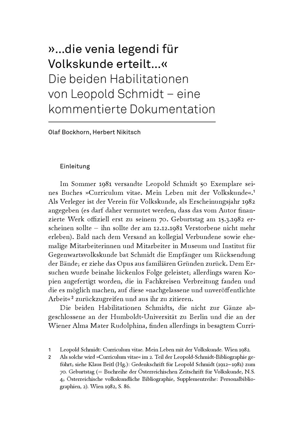 Bockhorn, Olaf; Nikitsch, Herbert: »...die venia legendi für Volkskunde erteilt...«