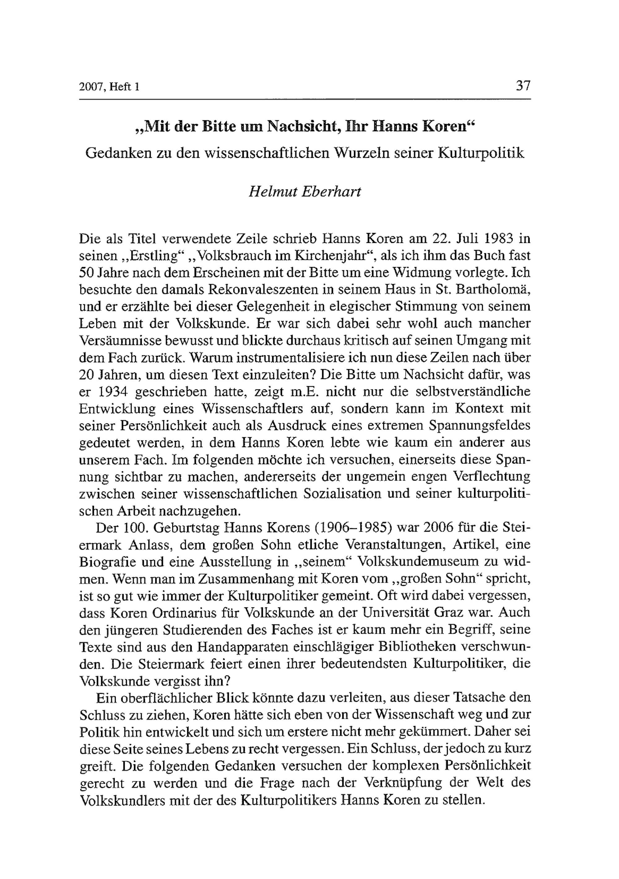 Eberhart, Helmut: „Mit der Bitte um Nachsicht, Ihr Hanns Koren“