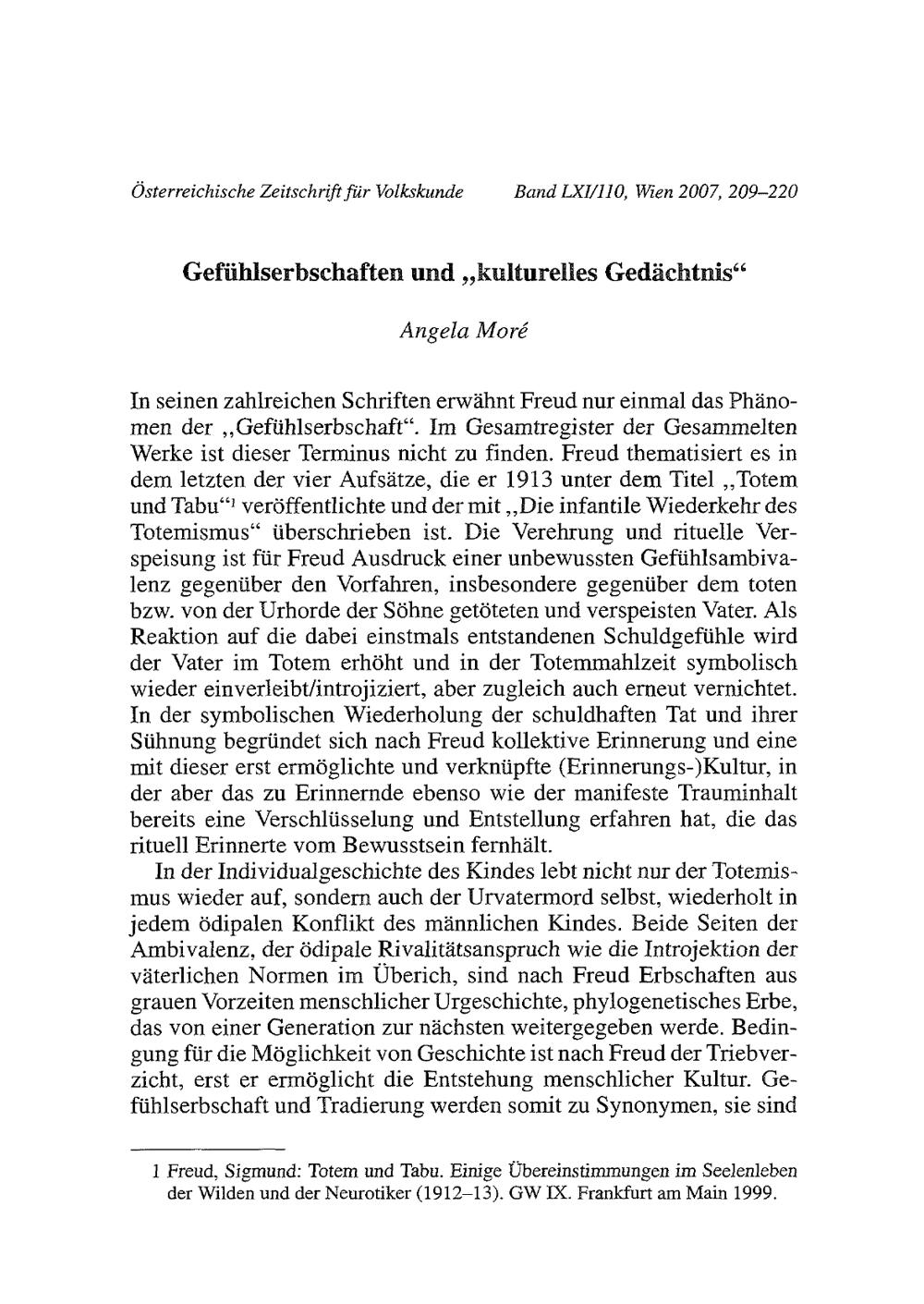 Moré, Angela: Gefühlserbschaften und „kulturelles Gedächtnis“