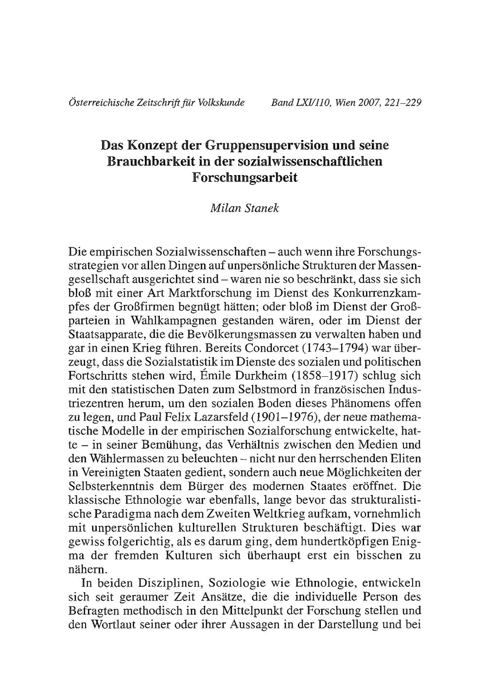 Stanek, Milan: Das Konzept der Gruppensupervision und seine Brauchbarkeit in der sozialwissenschaftlichen Forschungsarbeit
