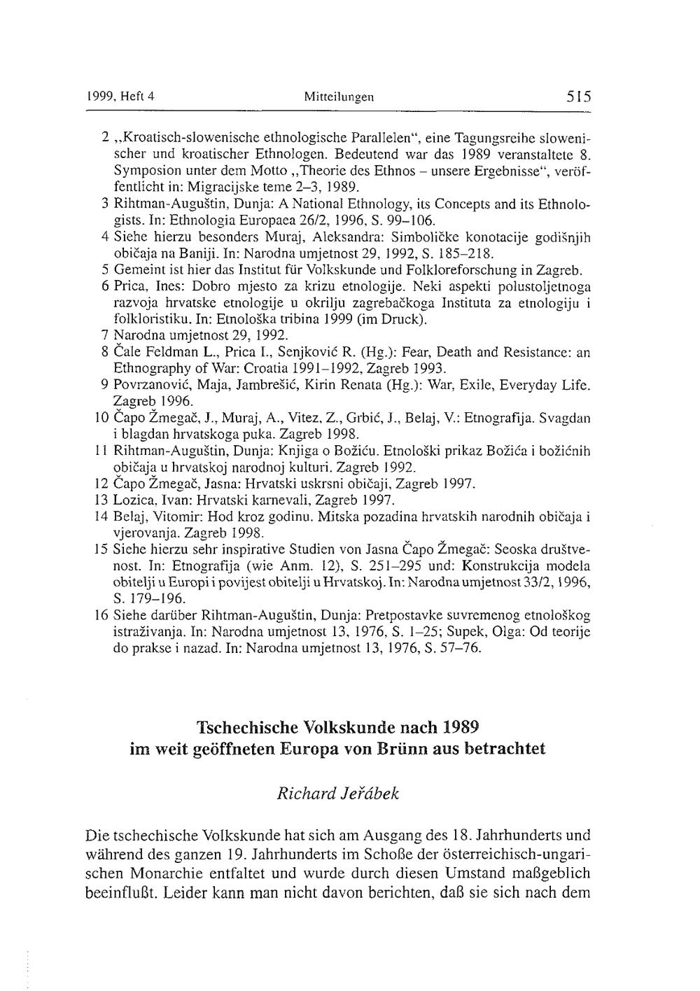 Rihtman-Auguštin, Dunja: Die kroatische Ethnologie und die Herausforderungen der Neunziger Jahre