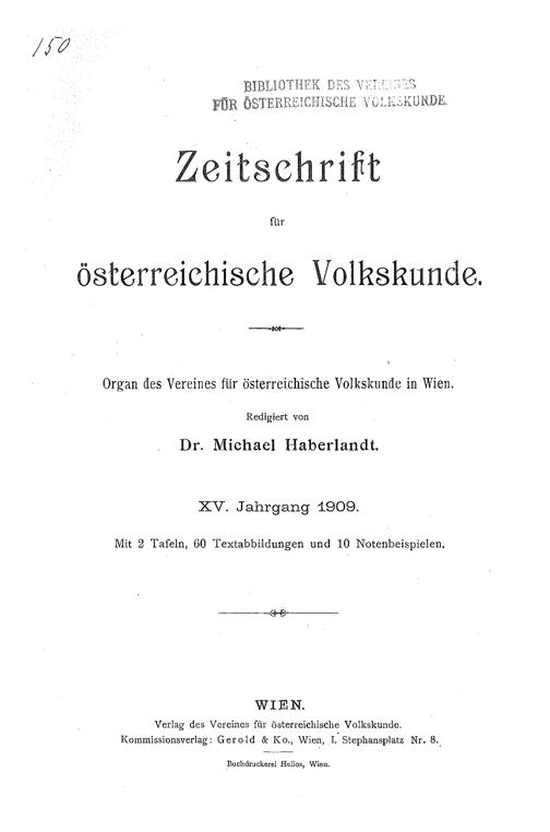 15 (1909) / Zeitschrift für österreichische Volkskunde